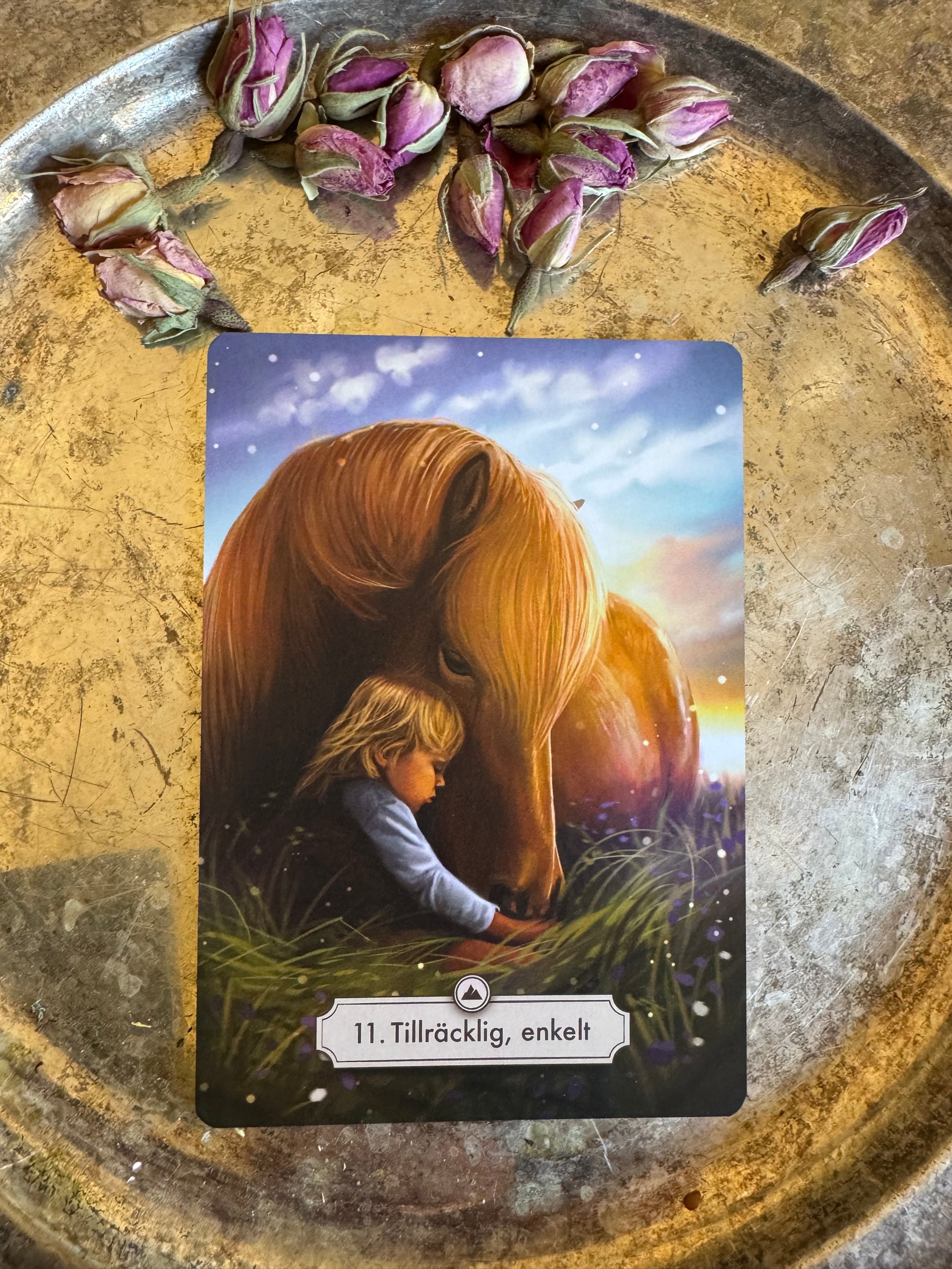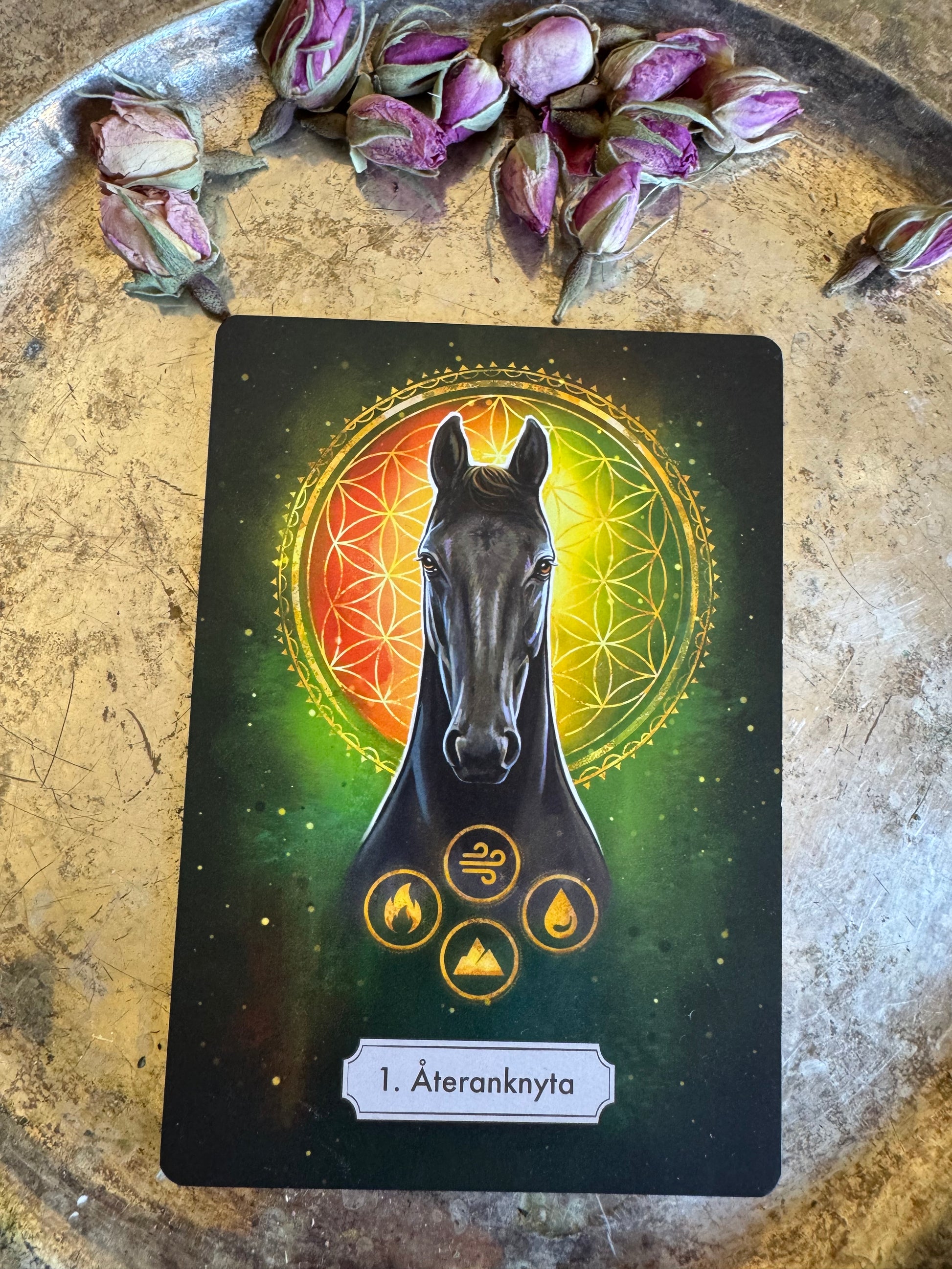 A magical oracle card deck with 45 cards from 46 horses who are now living or have been living on this earth. This creation is a co-creation project between all of these horses and 37 humans.