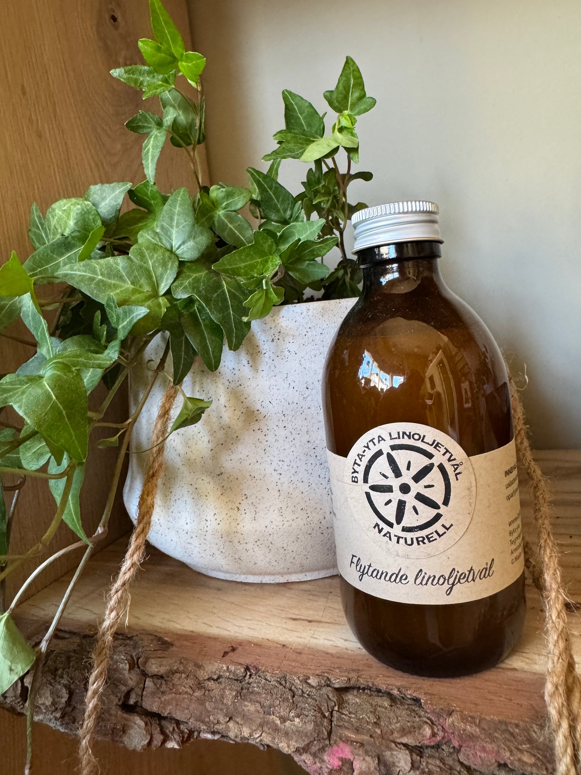 Created by our local producer Byta Yta: We make our own cold-stirred linseed oil soap from raw linseed oil and beeswax. The soap has strong cleaning power without drying out the skin. During the saponification process, natural glycerin is formed, which acts as a softening agent. Available as a solid bar, liquid soap, and soap flakes.